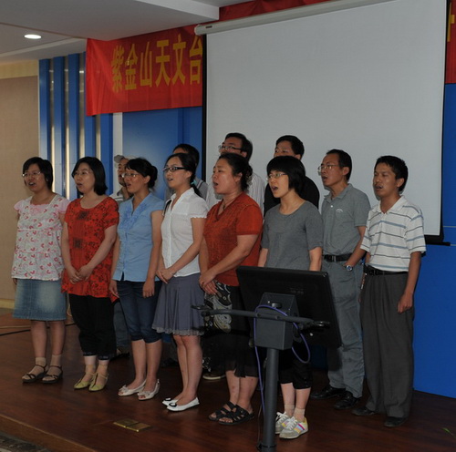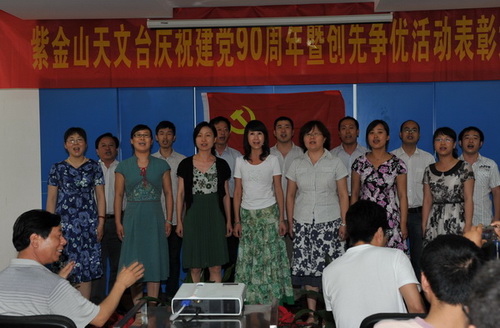 2011年6月30日下午,紫金山天文台隆重举行庆祝建党90周年暨创先争优活动表彰大会,并开展了“红歌献给党”文艺汇演。四楼会议室内济济一堂,全台160余名党员以及民主党派代表、职代会代表等出席大会。
