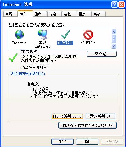 请点击“自定义级别(C)...”进入“安全设置-Internet区域”