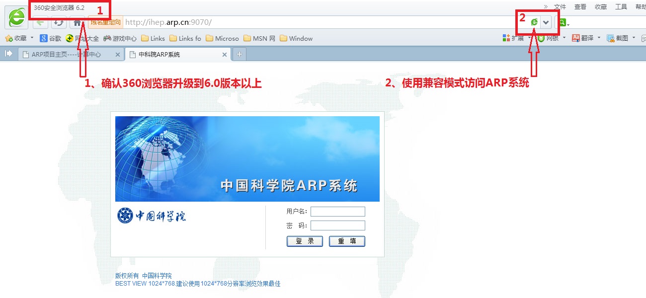 IE10浏览器访问ARP系统会有一些新的问题,主要是由浏览器不兼容造成的,可以使用“兼容性视图”来访问。