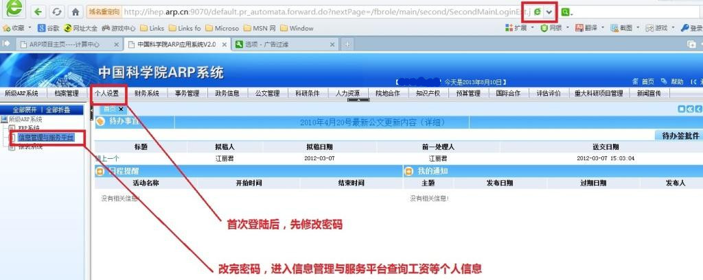 新入所用户第一次登录后需要在个人设置中更改密码,否则无法使用信息服务平台查询个人信息。