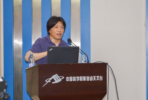 暑期夏令营的开营仪式一结束,由紫金山天文台(紫台)各研究团组导师组成的学术报告团开始了夏令营的的学术报告会活动。首先由常进研究员作《空间探测暗物质粒子》报告,详细介绍了暗物质探测方法以及暗物质粒子探测卫星的概况。史生才研究员、范一中研究员、韦大明研究员、郑宪忠研究员、吴德金研究员分别作《超导探测器在天体物理中的应用》、《宇宙物理学研究前沿及“悟空”团队研究生的主要工作》、《宇宙伽玛射线暴》、《星系的故事》、《太阳和太阳系等离子体研究》一系列学术报告。