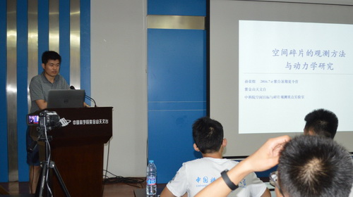 下午首先由魏俊杰博士作《中国科学院紫金山天文台“高能时域天文团组”》报告,详细介绍了吴雪峰研究员领导的高能时域天文团组在科学研究、国际合作和学生培养等方面的概况。季江徽研究员、马月华研究员、宿英娜研究员、封莉副研究员、孙荣煜博士分别作《行星科学:一个充满活力的前沿科学领域》、《太阳系小天体观测和研究》、《太阳风暴》、《感知太阳爆发》、《空间碎片的观测方法与动力学研究》一系列学术报告。