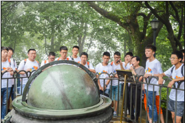 翌日,在研究生志愿者的带领下,营员们来到了南京大学左涤江天文台,参观了望远镜并观看了天文球幕电影,这使得营员们对天文的兴趣更加浓厚。为了让营员们更多的了解我国天文学发展历,活动组织营员们参观坐落在南京紫金山上闻名于世的紫金山天文台。在这里营员们不仅能看到中国古天文仪器和陨石博物馆,也了解了中国天文的孕育与绽放。