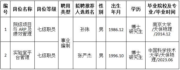 中国科学院紫金山天文台关于公开招聘2023年科研处事业编制岗位拟聘推荐人选的公示--孙玮、张严杰