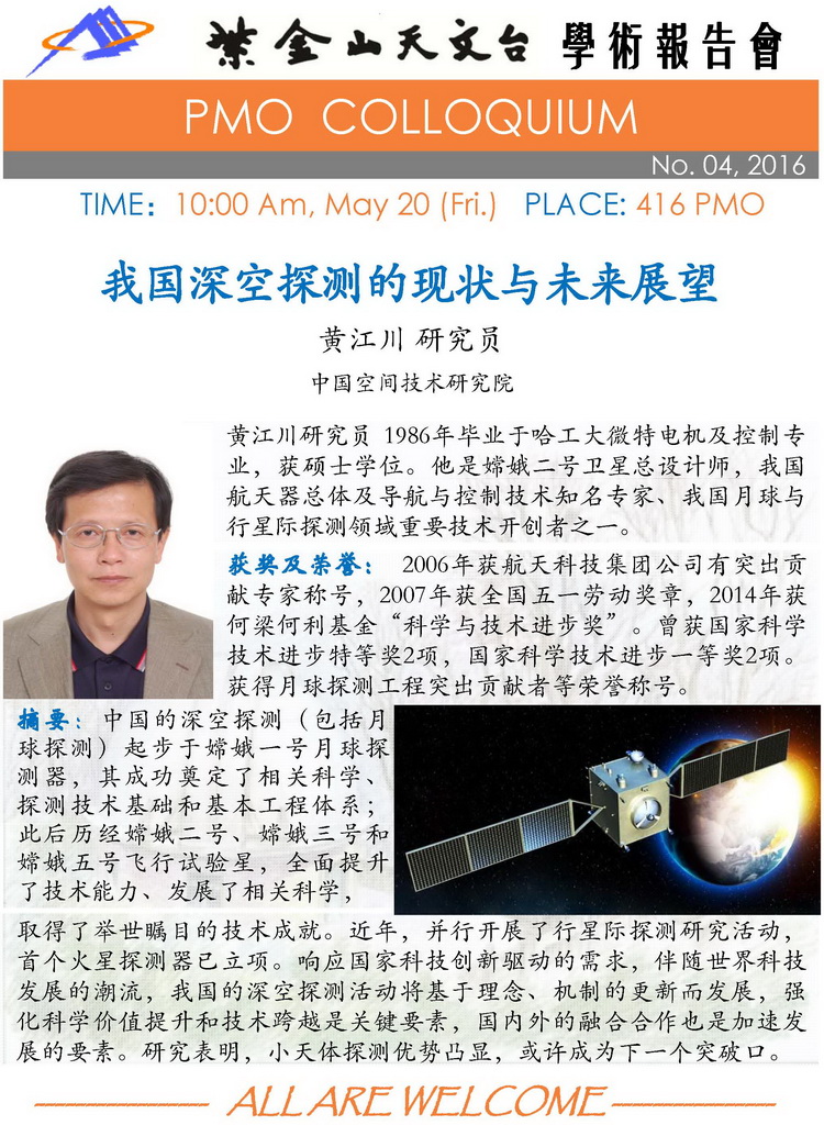 5月20日 PMO Colloquium:我国深空探测的现状与未来展望