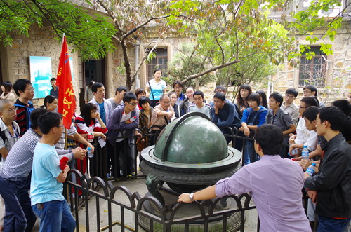 到达紫台后,同学们在萧耐园教授及紫台科普兴趣小组成员叶嘉晖和马清波同学带领下分为三组,参观了紫台图片展览室、大台的600mm反射望远镜、子午仪室和古代四大天文仪器(天球仪、浑仪、简仪、圭表),并登上天堡城俯瞰南京主城区全貌。在参观过程中,各所研究生认真听讲、积极提问、同老师和紫台高年级学生展开了热烈讨论。同学们纷纷表示此次参观紫台后,对紫台的历史及中国古代和近现代天文学的发展史有了一个全新的认识,对古代天文成就感到惊叹。