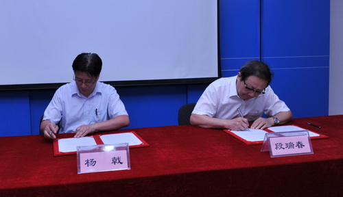 签字仪式上,段瑞春、杨戟分别代表何梁何利基金评选委员会和紫台在合作备忘录上签字。