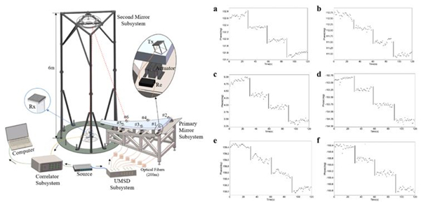 针对该难题,科研团队提出了基于超高相位稳定多路光纤传输技术的新方案,研制了超高相位稳定多路光纤传输链路,在200米传输距离、10分钟内达到11飞秒(fs)的稳定性,如图1(II)所示。在此基础上,把该链路应用于一套基于天线的相位自适应稳定系统(PASS),在外场自然温度变化条件下实现了优于20微米的实时测量精度(图2),突破了“毫米波/亚毫米波长距离高稳定相位和功率线传输”的瓶颈。相比国际同类研究,本系统实时测量精度提升了1到2个数量级。