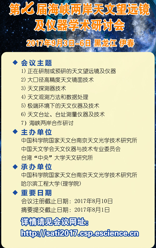 第七届海峡两岸天文望远镜及仪器学术研讨会(2017年9月3-6日,黑龙江伊春)