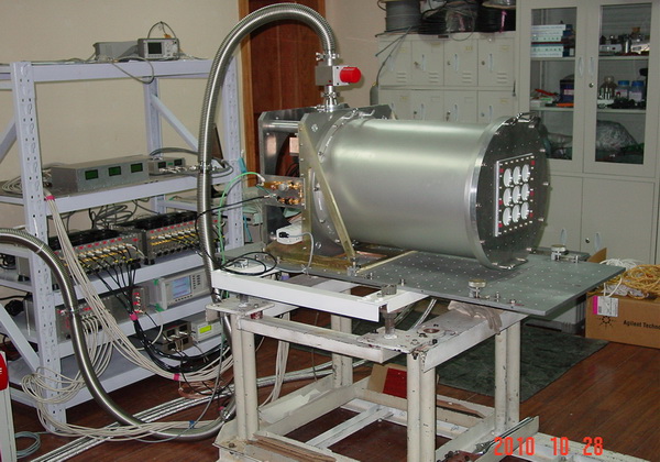 大天区、高分辨、高灵敏度观测是毫米波射电天文发展的重要前沿方向。紫金山天文台利用已有的超导接收技术优势,突破毫米波多波束接收机的关键技术,研发具有自主知识产权的超导成像频谱仪。该设备是我国“十一五”期间启动的8项重大科研装备自主创新项目之一,由财政部和科学院于2007年批准立项。2010年10月底开始在紫台青海观测站13.7米毫米波望远镜上安装调试,11月9日安装调试成功,成为该望远镜的换代接收机。该装备研制过程中发展了边带分离无调谐超导SIS混频技术、高性能低温中频技术、毫米波数字合成本振及功率分配技术、全数字偏置电源技术、宽带高分辨数字FFT频谱技术等多项新技术,成功实现了大规模毫米波系统集成。该设备是国际上毫米波段的第一例基于边带分离技术原理的多波束接收机,也是我国射电天文领域研制的第一台多波束接收机。