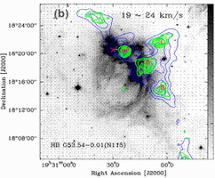 国家天文台和紫金山天文台青海观测站的研究者利用紫金山天文台青海德令哈观测基地13.7米望远镜对H II区G53.54-0.01(N115)进行了CO分子谱线的观测。 通过成图观测,发现HII区G53.54-0.01的红外8微米辐射与一个大尺度红外Bubble在视向上重叠。特别重要的是在该H II区周围共探测到4个分子云核,在其中的三个云核中探测到被HII区G53.54-0.01膨胀堆积的气体,有趣的是在另一个云核中不仅没有探测到被堆积的气体,而是在该云核中探测到了分子外向流。分子外向流是恒星形成的标识。通过计算,存在分子外向流的云核具有大的质量,进而说明该核存在一个正在形成的大质量恒星,该大质量恒星可能是被H II区G53.54-0.01通过collect and collapse过程触发形成的。工作即将发表在天体物理杂志(A&A),详细内容见:http://arxiv.org/abs/1407.6819。