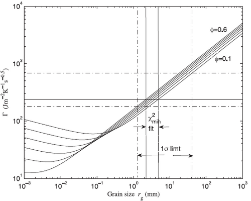 图3 Bennu小行星热惯量与表面物质平均颗粒尺寸的关系