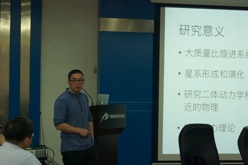2017年4月20日,紫金山天文台(以下简称紫台)第二十三期青年论坛举办。本次论坛由紫台青促会会员魏俊杰助理研究员主持,中科院上海天文台韩文标副研究员应邀参加。韩文标副研究员,中科院青促会会员,中国科学院大学《广义相对论基础及应用》主讲教授,其研究领域为相对论基本天文学和大质量比双星引力波数值模拟,迄今已发表SCI论文20余篇、专著一部。