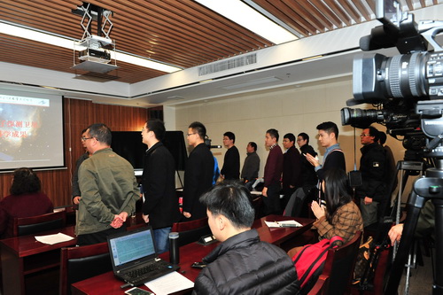 2017年11月30日14点,紫金山天文台举行暗物质粒子探测卫星“悟空”首批重大科学成果报告会,会议由党委书记张丽萍主持。中央电视台江苏记者站、江苏电视台江苏新时空、新华社江苏分社、中国新闻社、新华日报江苏分社等十多家媒体到会参加。报告会通过中新网进行了全程直播。紫台党政领导、工程主要负责人、各系统负责人、主要参加单位和暗物质卫星团队,紫台副研以上科研骨干、机关和支撑系统负责人等140余人在报告会现场共同聆听报告。
