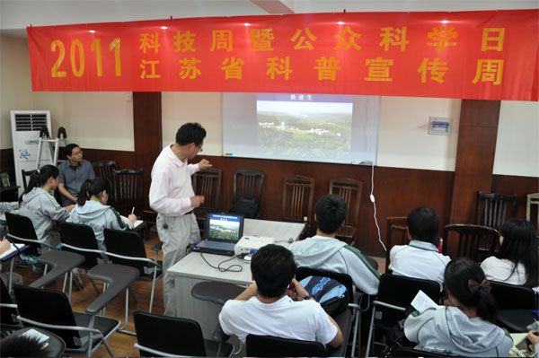 5月14日中午,来自南京和常州3所中学的50多名师生从南京出发来到盱眙近地天体观测基地。该站姚进生副研究员为大家作了题为“建站历程和1.2米近地天体望远镜观测情况介绍”的科普报告。姚老师风趣幽默地讲解深深打动了与会听众,赢得了阵阵掌声。