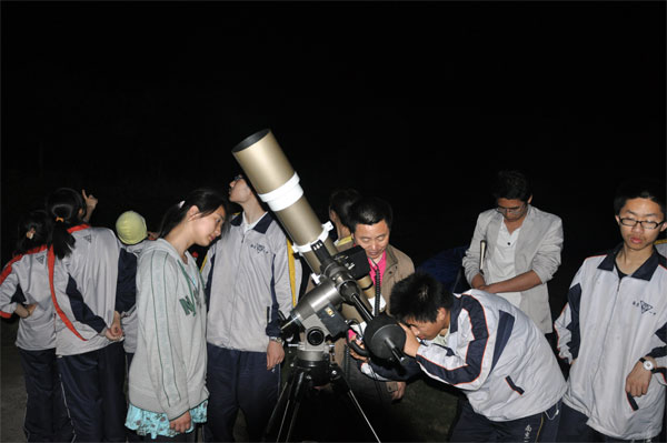 学生们利用自带的望远镜看到了月球环形山和土星光环十分兴奋
