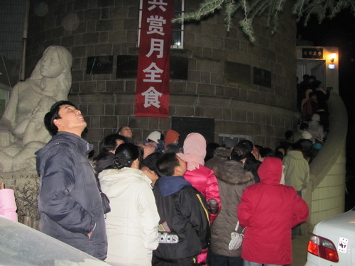 2011年12月10日晚,平常冷清的观象山顶这时人声鼎沸、热闹非凡,因为十年来最佳观测机会的月全食即将震撼上演。由于天公作美,当天天气晴朗,万里无云,而且寒流一过,寒冷的北风也停止了呼啸,观象山上早早的聚集了众多的人群,大家都不想错过这难得一见的重要天象。