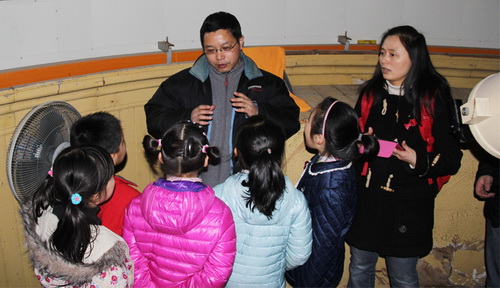2014年3月15日,南京持续多日的雾霾和阴雨天终于有所好转,紫金山天文台科普部利用这难得的好天气,为南京苏杰学校三十多名小天文爱好者和家长举办了2014年首场夜间观星活动。