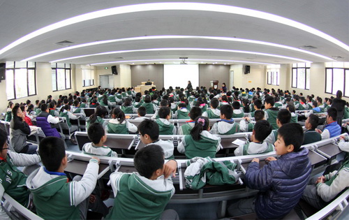 2014年12月8日下午,紫金山天文台王思潮研究员应邀来到南师附中树人学校,为近300名初一年级师生作了题为“放飞想象力的翅膀”的科普报告。