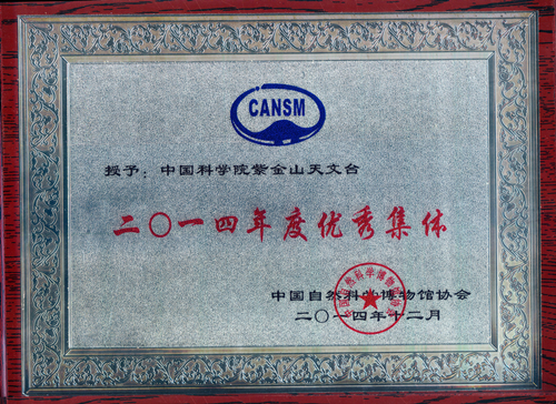 2014年12月15日,中国自然科学博物馆协会发布关于表彰2014年度优秀集体和优秀工作者的决定,鉴于本年度出色的科普工作,中国科学院紫金山天文台和中科院紫金山天文台青岛观象台荣获优秀集体称号,紫台陈向阳同志、张艳同志被评为优秀工作者。