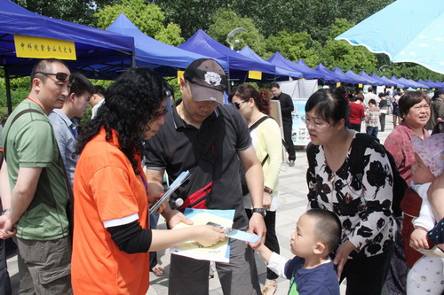 参加南京市科普周主会场活动,向市民发放紫台参观券