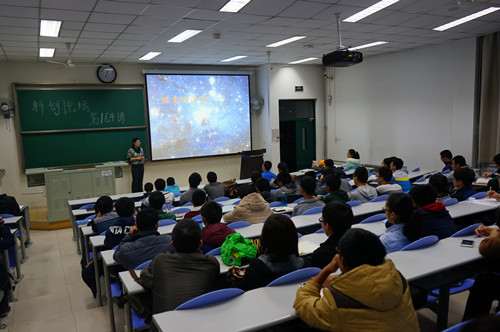 马教授以轻松愉快的开场白,让大家的心情放松了许多,随后从我们身边的太阳讲起,依次讲到恒星的类型、恒星的赫罗图、恒星从出生到死亡所经过的阶段、恒星演化的基本规律、钱德拉塞卡极限、奥本海默极限等等,中间还穿插着视频、动画,将原本晦涩难懂的理论知识进行了通俗易懂的解释,让所有的倾听者茅塞顿开。不知不觉间,时间已经过去了一个半小时,课程也已结束,但是大家都不愿离开,围着马教授提出了很多问题,从黑洞、白洞、到虫洞,再到宇宙膨胀、奇点、四维空间……,马教授都一一给予了耐心的解答。