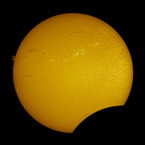 8点41分初亏开始,月球渐渐挡住了太阳的一角; 在9点21分时,日面被遮挡到了最大,达到0.14的最大食分,随后在10点01分复圆。在此阶段,天文台内的观测设备一直在紧张工作,整个日偏食的全过程基本上被完整地记录下来,并通过微博号“@紫金山天文台科普部”及时地发布。