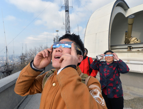 2016年3月9日上午(北京时间)发生的日全食是全球天文爱好者都非常关注的天象,全食带从印度洋东北部开始,经过印度尼西亚的明打威群岛、苏门答腊岛等,在太平洋东部结束。我国并不在全食带内,南京地区只能看到食分为0.14的偏食,紫金山天文台科普部举办了日偏食观测活动。