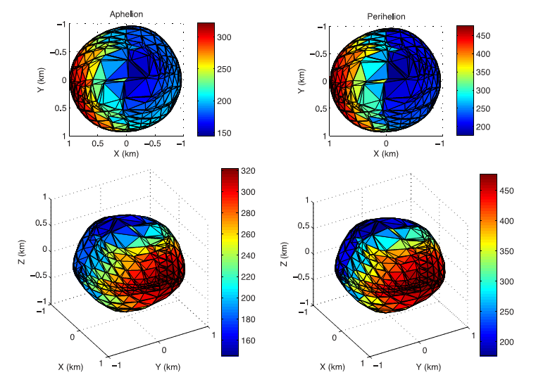 图1 1996FG3的三维形状与表面温度分布