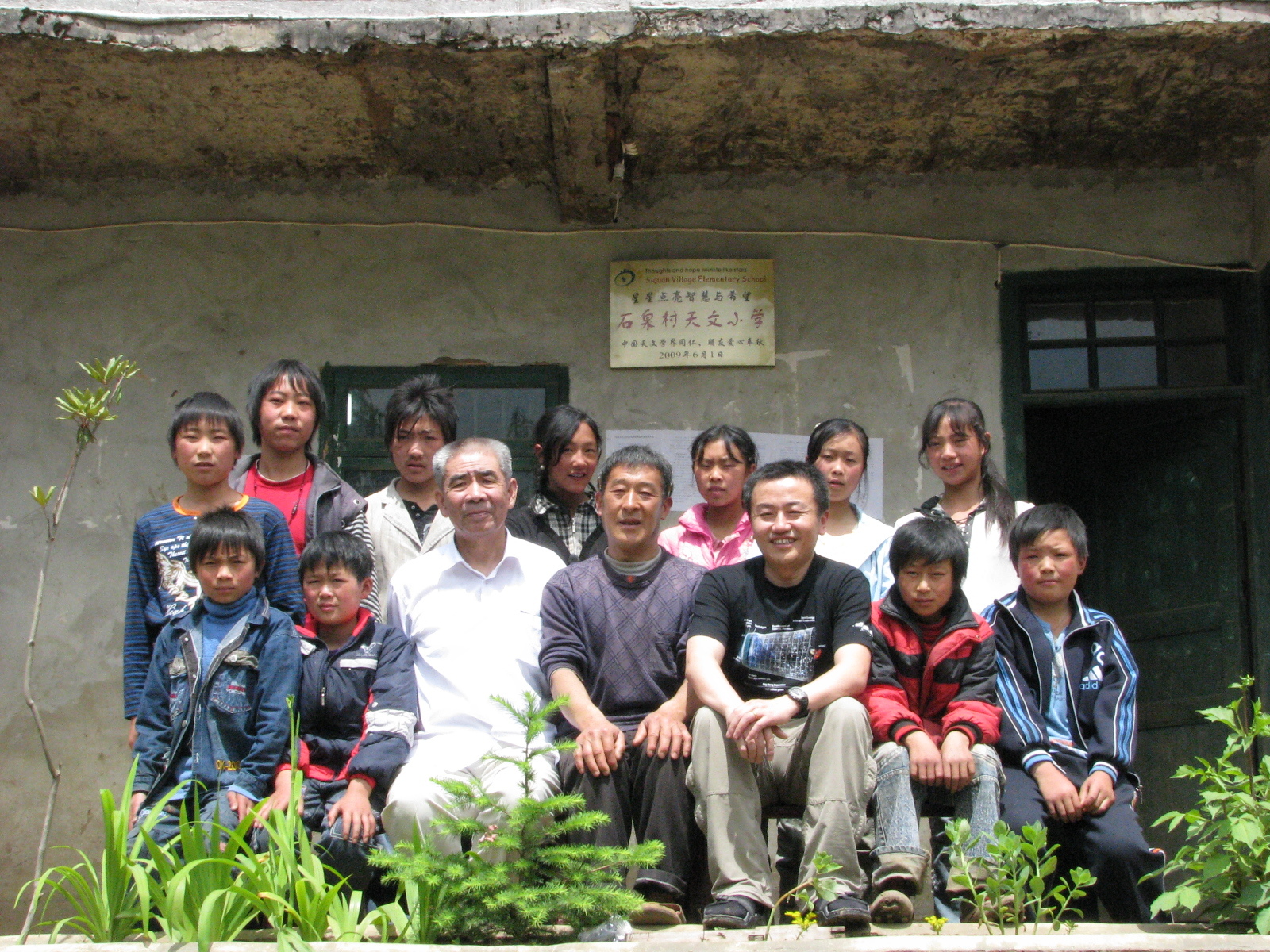 2009年6月,四川汉源,熊院士为带头捐赠的石泉村天文小学挂牌,与师生合影留念.jpg