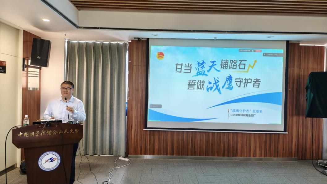 为深入开展树立和践行正确政绩观学习教育,深入学习贯彻习近平总书记关于科技创新、技能强国的重要论述,大力弘扬工匠精神,牢固树立科技报国的理想信念,切实强化党员使命担当,引导广大科研工作者立足岗位履职尽责、勇攀高峰,2026年4月10日下午,中国科学院紫金山天文台举办“甘当蓝天铺路石 誓做战鹰守护者”专题党课主题党日活动。本次活动由暗物质和空间天文党支部承办,紫金山天文台各支部党员同志现场参会学习。