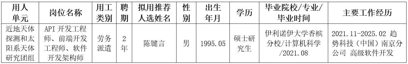 中国科学院紫金山天文台关于公开招用劳务派遣人员拟用推荐人选的公示--陈键言