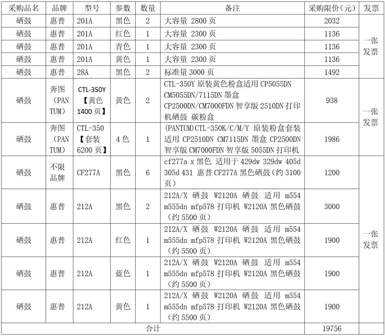(三)采购限价:19756.00元人民币。